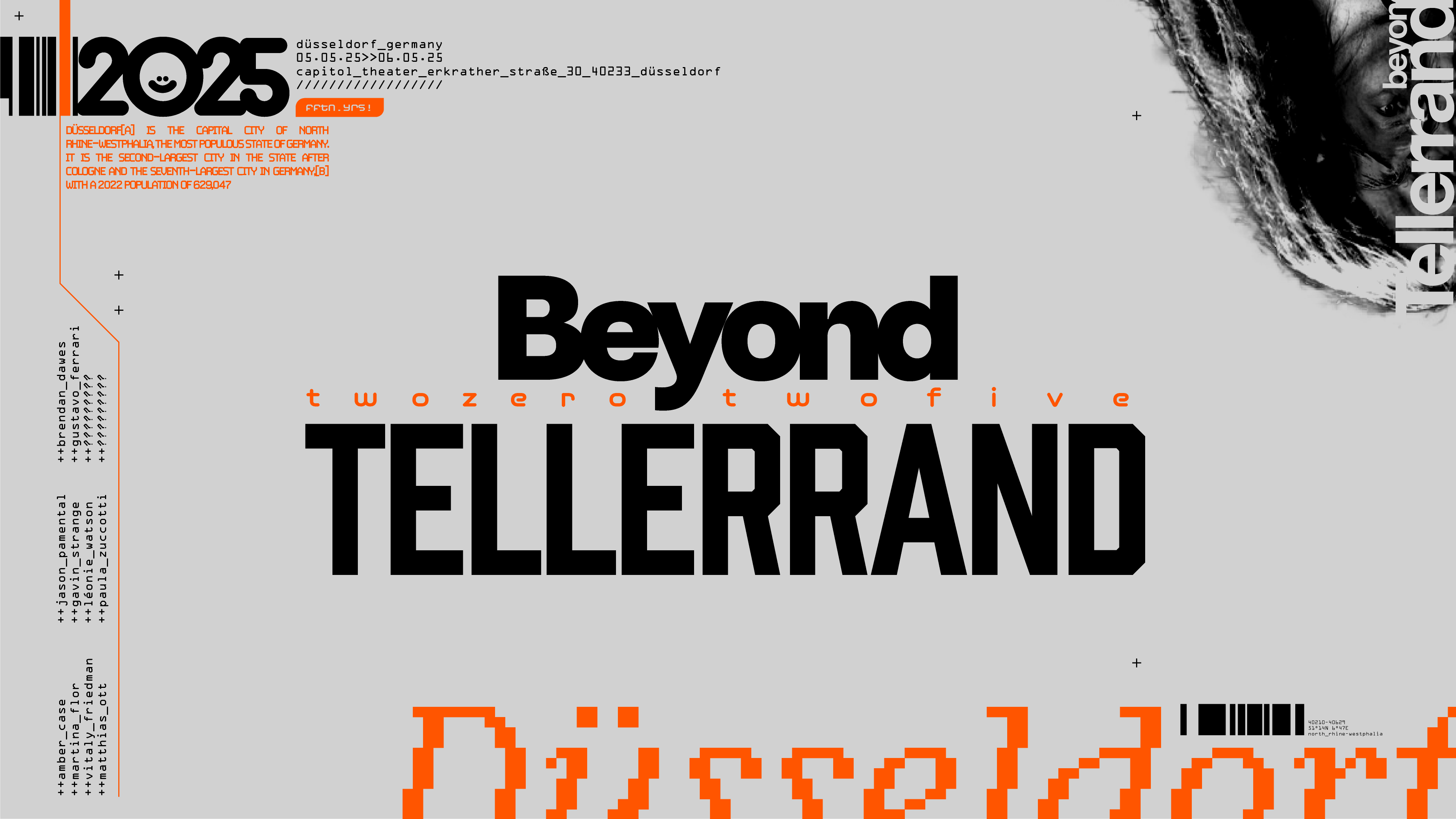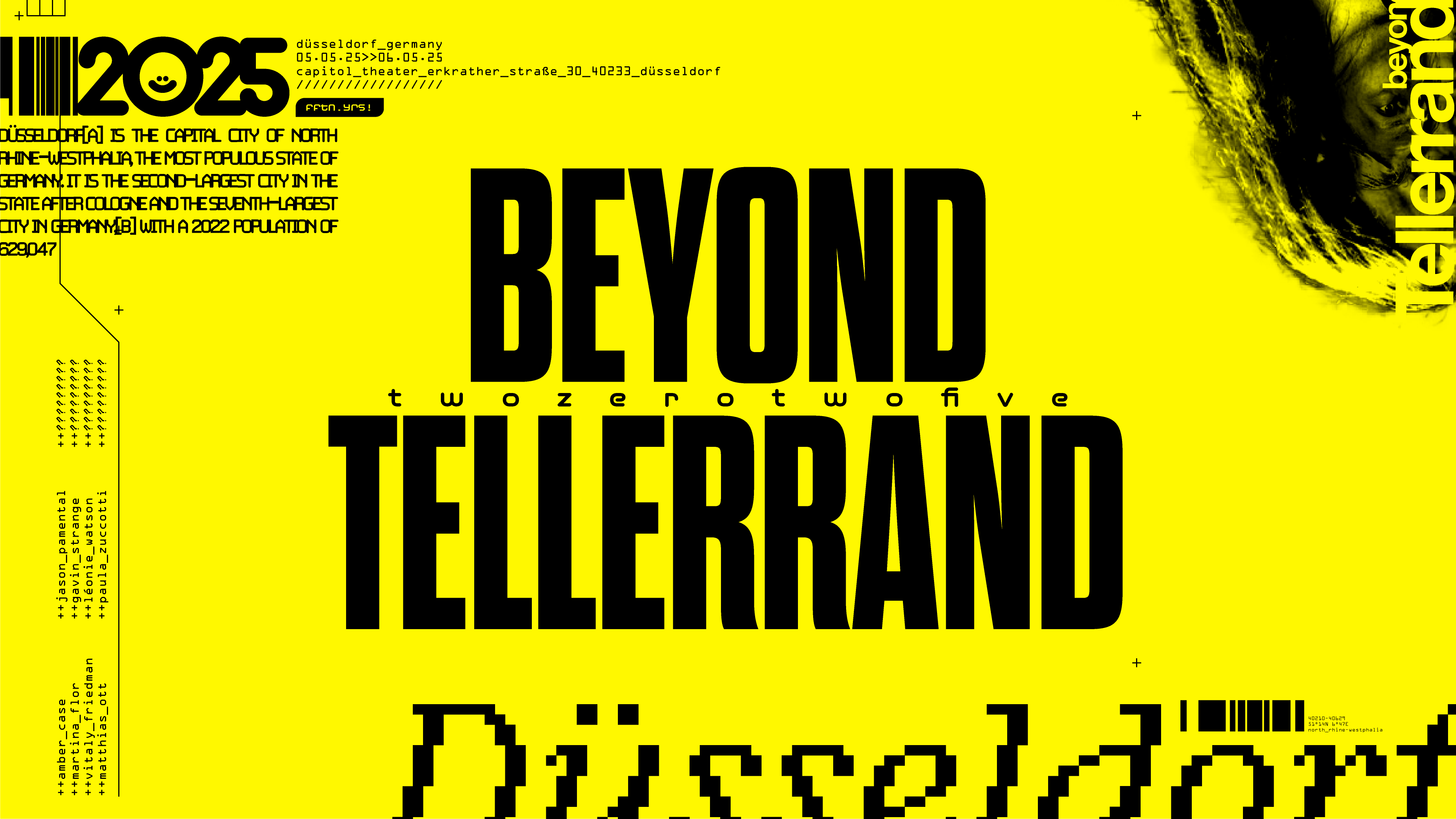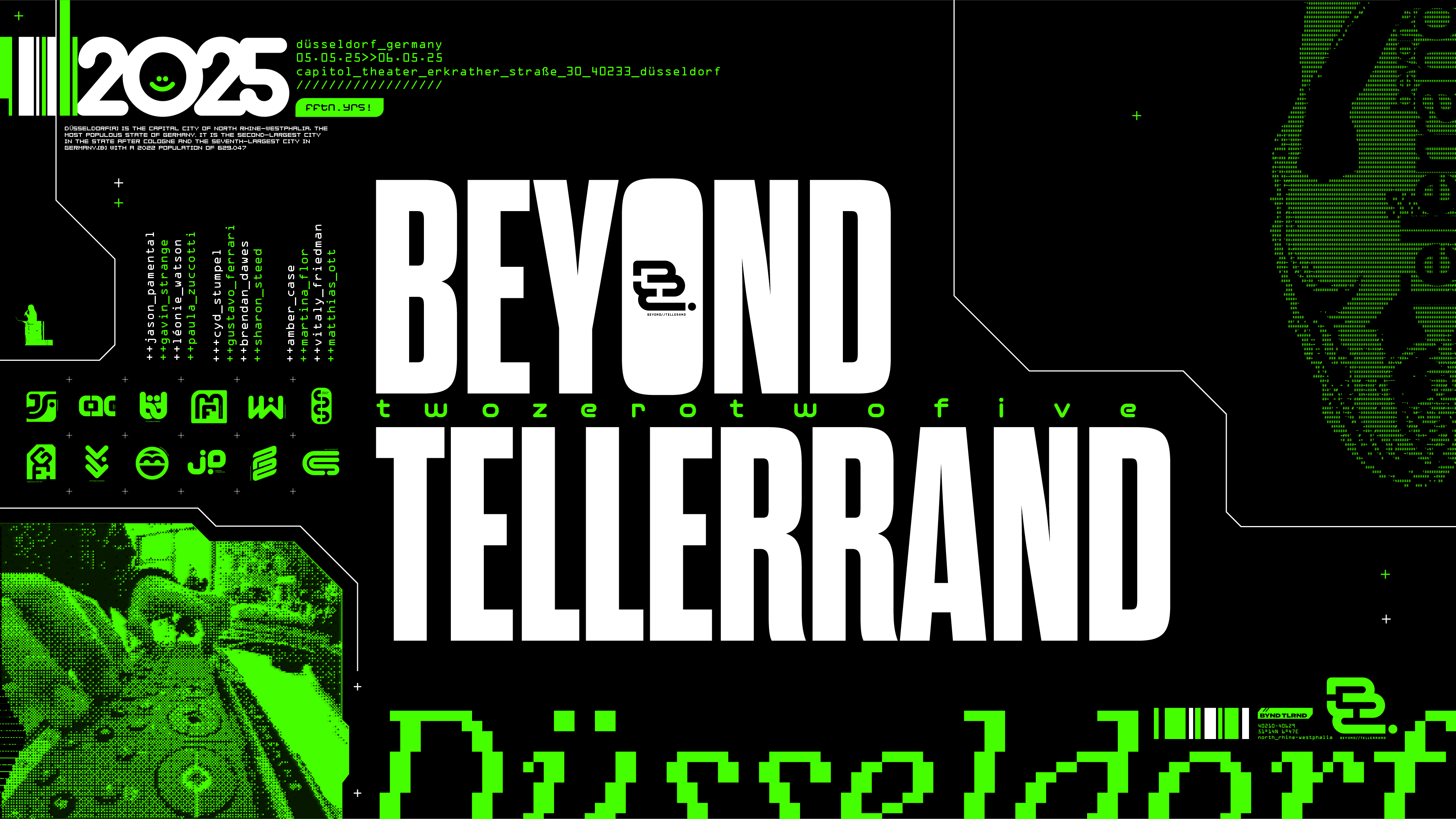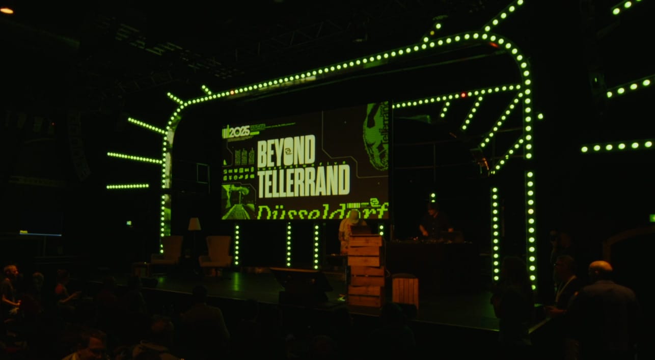 Here's the story of the 'Beyond Tellerrand' titles. It all began with the friendship of the nicest man on the planet, Marc Thiele. Marc is the founder, organizer and 'host' of Beyond Tellerrand, a creative event / festival / gathering he's been running for the last fifteen years. We've known each other for ages, Marc is often attending other conferences around the world, and we've been bumping into each other for many a year. In 2022 I had a blast speaking at his Berlin event, and since then we've always chatted about creating the title sequence for one of his events. The planets finally aligned and 'Düsseldorf 2025' was the target.