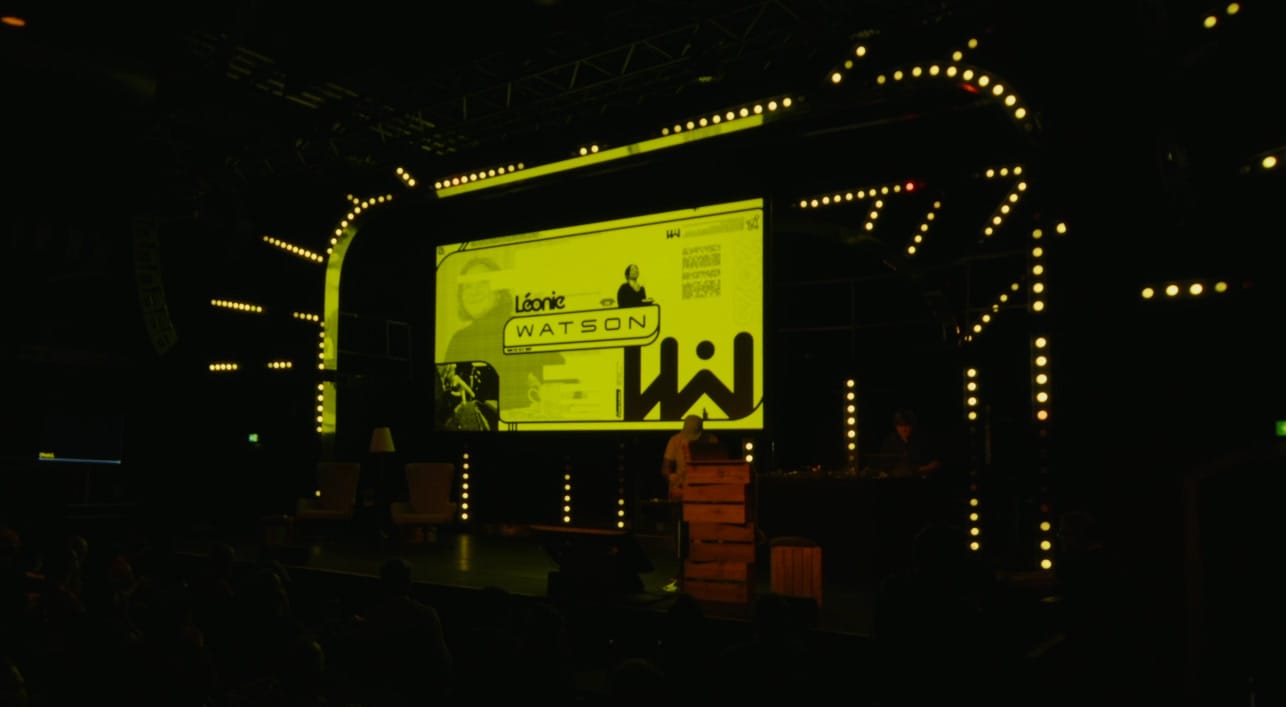 With all the design done, it was then time to, y'know, make it move! So the whole title sequence is powered by this thing below, the Teenage Engineering OP-Z. It's a powerful sequencer and sampler that also lets you control lights via DMX and visuals via MIDI. I wanted to make a piece of music for each speaker and whilst that beat is playing, it displays their slide on-screen, with the different elements of the music controlling different parts of the design.