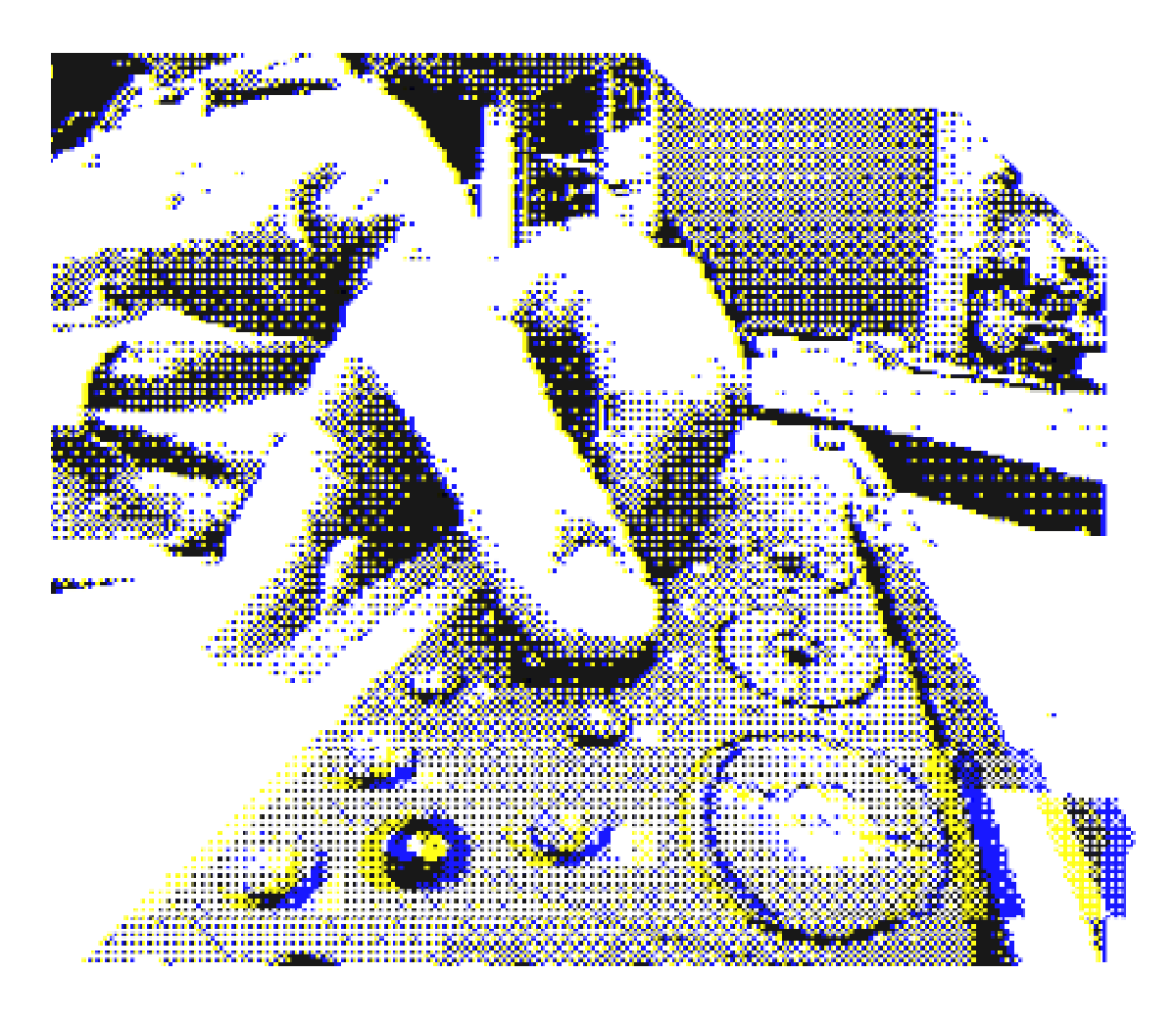 Another benefit of using OBS was being able to use realtime shaders on, well, anything! To bed the camera feed into the designs, I used a Gameboy Camera-style pixel shader which added a lovely bit of pixellation and dither, combined with a glitch effect which just kept things feeling 'alive'.