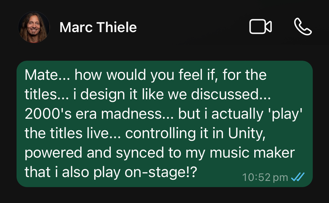 Until me and Marc are talking about the titles for BT 2025 and then it hits me! This is it, this could be the project that finally takes the OP-Z + Unity + Visuals out of the hypothetical and into the practical for me! So I send Marc a message...