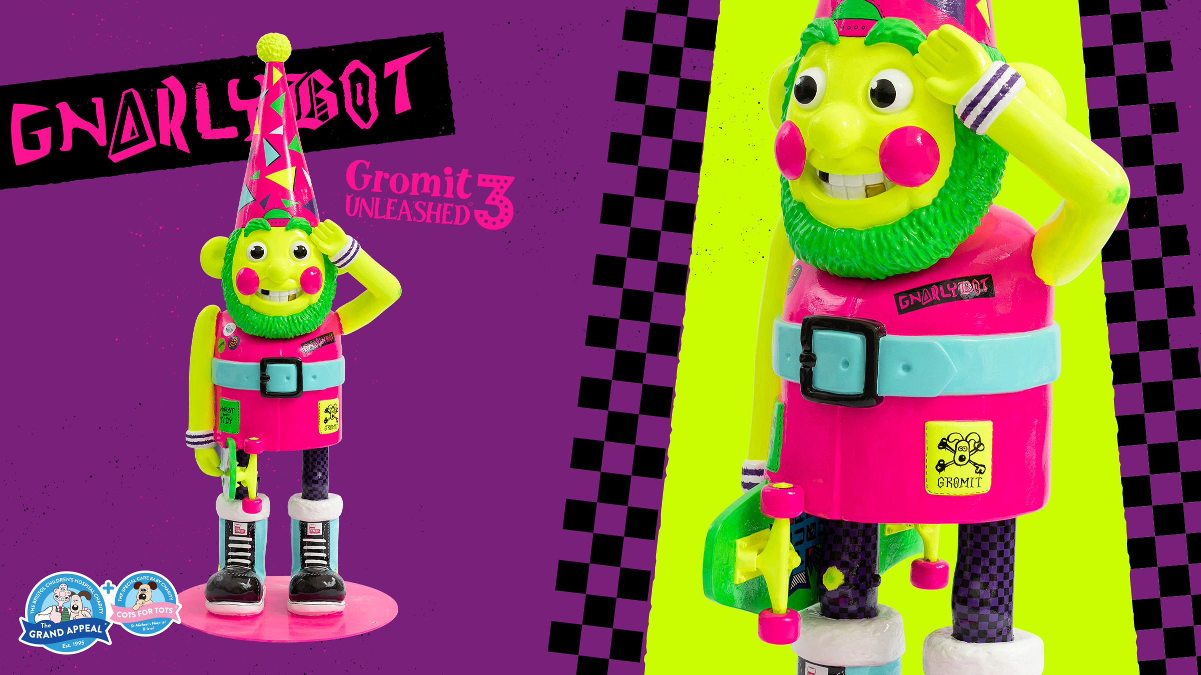 The wonderful Ruth Broadway brought my design to life, taking it from a 2D design to a wonderfully bonkers fluro fella! Then my good friend Jamie Cross weaved his magic and applied the vinyl finishing touches! (We’ve worked together on every single Gromit sculpture I’ve ever done!).