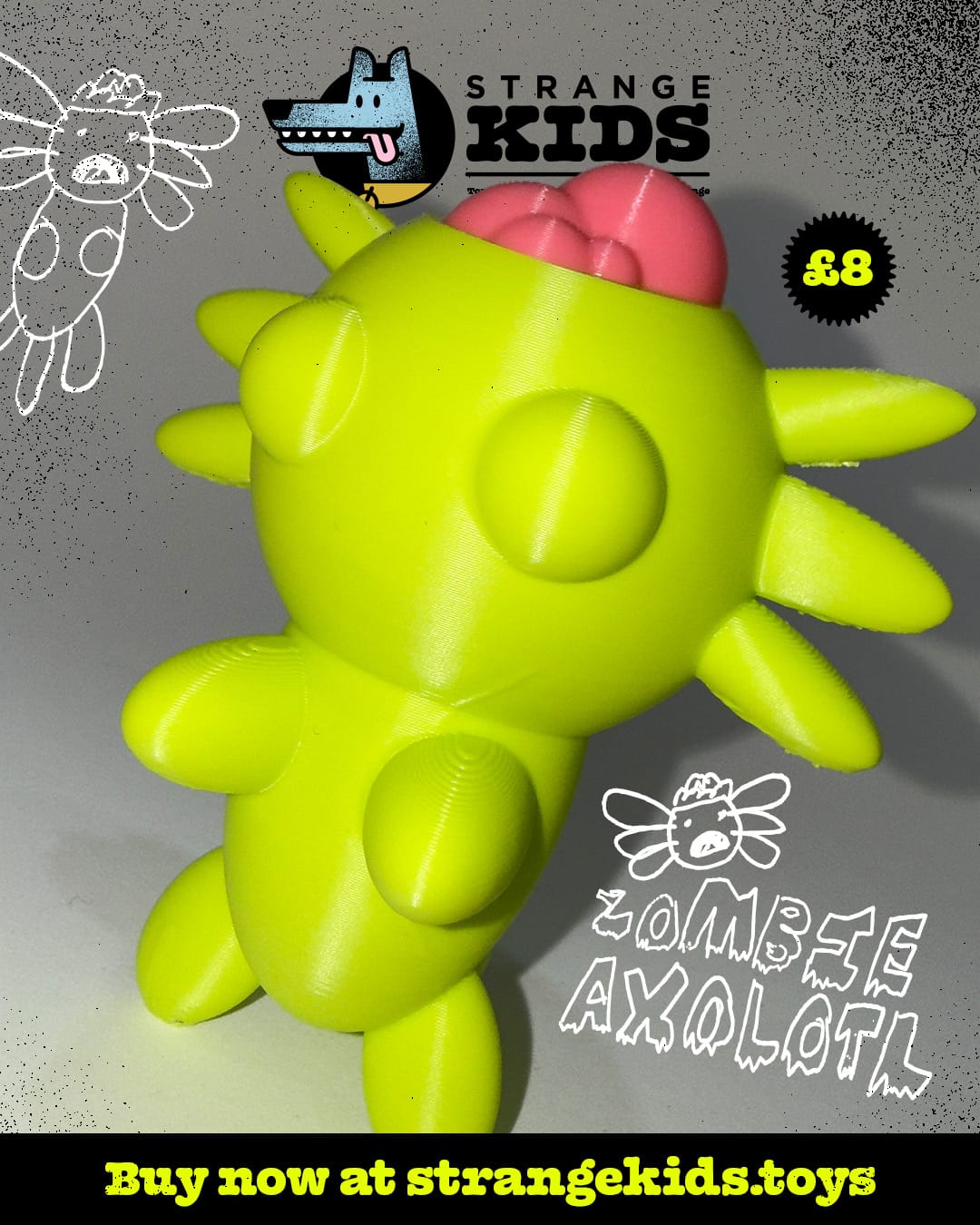 In other news, our 'Strange Kids' toy 'business' is still in full swing, Sully modelled a 'Zombie Axolotl' variation and has popped it on the online store, if you fancy picking up something for this spooky season: