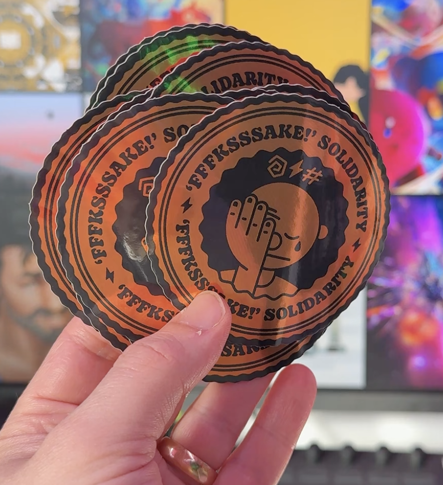 First up, the awesome Stickerapp did an ace job of turning my 'FFFKSSAKE' graphic into shiny metallic die-cut stickers!